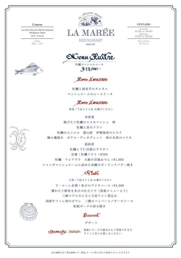 ※表示価格は消費税込、別途サービス料10%を頂戴いたします。